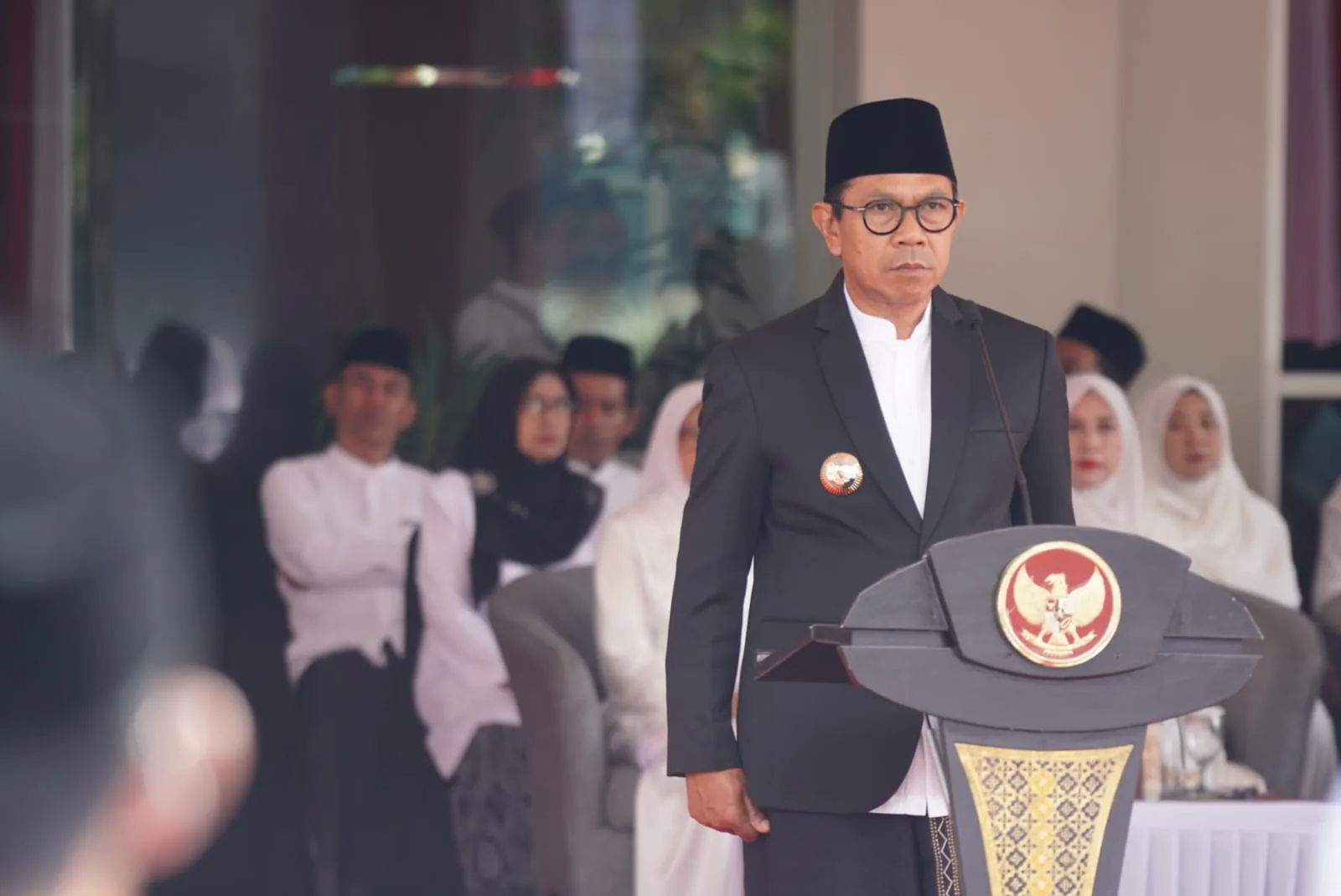 Saat apel, Nurochman membacakan pidato Menteri Agama Prof Dr KH Nasaruddin Umar, MA, yang diawali dengan ucapan duka cita atas wafatnya 67 santri dalam musibah yang menimpa Pondok Pesantren Al-Khoziny, Buduran, Sidoarjo beberapa waktu lalu.